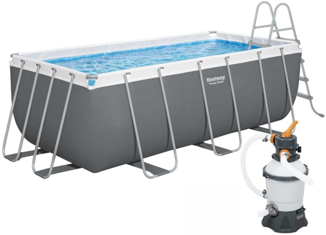 Каркасний басейн Bestway 56457 - це модель прямокутної форми з помірними габаритами й може встановлюватися на будь-якому дачному дворі або прибудинкової території. Чаша басейну виконана з тришарового армованого лайнера. Покриття Framelink захищає каркас від іржі, гарантує високу надійність і довговічність всієї конструкції. Внутрішнє оздоблення імітує блакитну мозаїку. У комплекті з басейном поставляється драбина, фільтраційна установка, яка гарантує підтримку чистоти води протягом усього сезону купання.