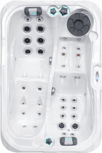 СПА-басейн Passion Spas Indulgence – сучасний СПА з використанням невеликого об'єму води. Продуманий дизайн забезпечує зручне розташування підсвічування, форсунок та елементів керування. У басейні є 2 обладнані лежаки. Виготовлений з вінілестеру і поліестеру з технологією Aristech® Acrylic, має тришарову ізоляцію, захисне покриття Everlast™ та систему очищення води. У басейні є 2 підсклянники та 2 зручні підголівники зі світлодіодним підсвічуванням. Розміри: 214х143х63 см Об'єм: 410 л Кількість масажних форсунок: 40 водних