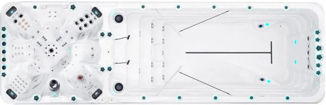 Плавальний СПА-басейн Passion Spas Vitality Deep – це сучасний СПА з сімома ковшоподібними сидіннями, масажними форсунками і місцем для плавання. Виготовлений з вінілестеру та поліестеру за технологією Aristech® Acrylic, має тришарову ізоляцію, захисне покриття Everlast™ і систему очищення води. Hybrid Heating™ збільшує тепло і знижує енергоспоживання. Інноваційна розробка Current-Lift™ автоматично регулює течію води, що дає змогу плавцю залишатися на поверхні за будь-якої інтенсивності. Має програмоване ввімкнення і вимкнення. Розміри: 708x225x155 см Об'єм: 13 000 л Кількість масажних форсунок: 70