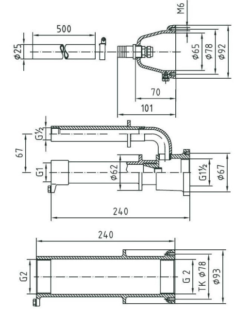 У комплекті: закладна для форсунки водозабору, закладний елемент для форсунки, що подає, закладна ніша під пневмокнопку.