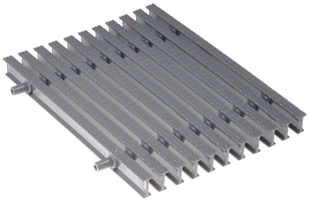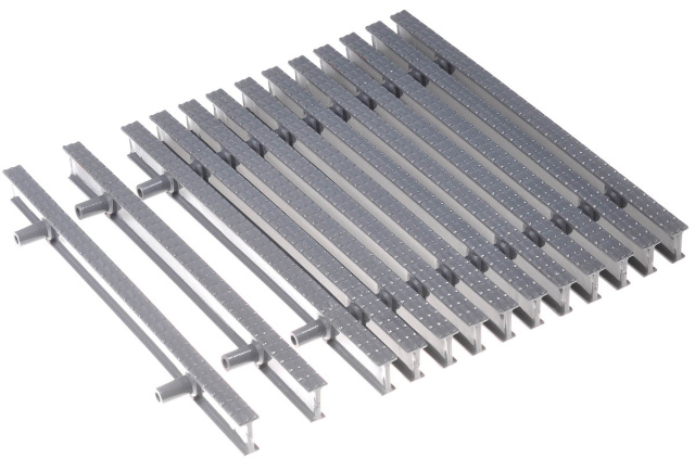 Переливна решітка Aquaviva. Серія KP HKE08-G Classik. Набірна (складається з окремих елементів). Використовується для створення зони переливу в басейнах. Виконує функцію забору води, а також декоративну функцію. Деталь виготовлена з високоміцного полімерного сплаву, стійкого до УФ-випромінювання та вологи. Матеріал розрахований на цілорічне розміщення на вулиці навіть за умов від’ємних температур. Ціна вказана за погонний метр. Решітка відвантажується кратно метру (48 модулів на 1 метр).
