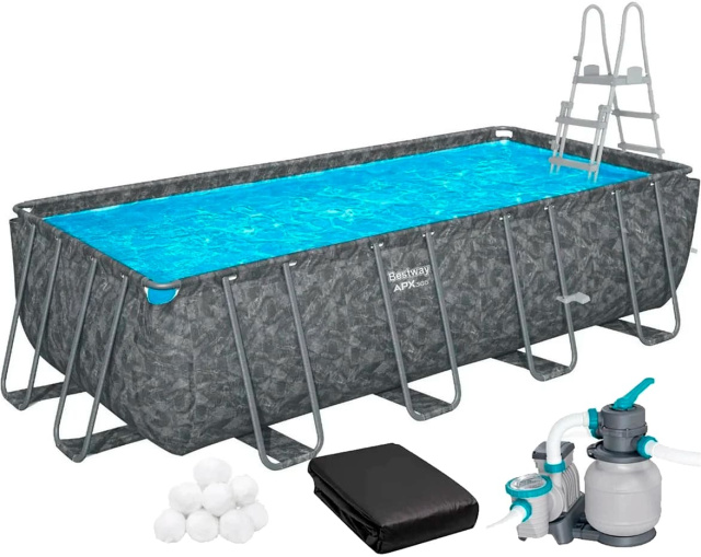 Каркасний басейн Bestway Grey 561KA – це модель прямокутної форми з помірними габаритами, яку можна встановити на будь-якому дачному подвір’ї або прибудинковій території. Чаша басейну виконана з тришарового армованого лайнера. Стійкі до розриву та УФ-випромінювання бічні стінки з матеріалу TriTech надійно витримують навантаження, викликані вагою та рухом. Облицювання басейну всесезонним захистом Polar-Shield надає басейну морозостійкі властивості. Система ClickConnect мінімізує ризик пошкоджень, викликаних контактом із металом. Внутрішня поверхня чаші виконана у вигляді блакитного мармуру. У комплекті з басейном постачаються захисний тент, драбина та фільтраційна установка піщаного типу, яка гарантує підтримку чистоти води протягом усього сезону купання.