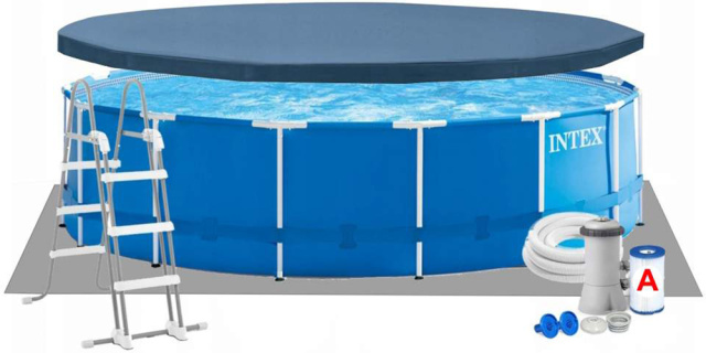 Басейн комплектується картриджною фільтраційною установкою, драбиною, підкладкою і тентом.