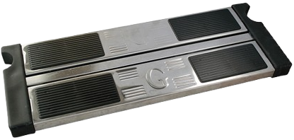 Подвійна сходинка для сходів Golfinho. Виконана з нержавіючої сталі AISI 316, стійкої до корозії, впливу ультрафіолету та хімічних реагентів. Має пластикові накладки з протиковзним ефектом.