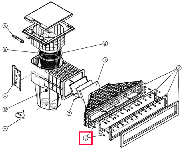 Комплект фурнітури X-Line (12 + 28) для скімера Hayward X-Pro 600. Цей товар зображено на схемі під №3.