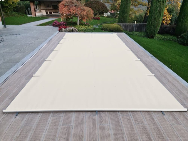 Захисне накриття для басейну LP Standard – ідеальне рішення для будь-якого сезону. Виготовлено з антибактеріальної ПВХ-тканини щільністю 580 г/м². Покриття відповідає європейському стандарту безпеки NF P 90-308. Це економічна і компактна альтернатива ролетам, яка легко встановлюється і не займає багато місця при зберіганні. Додатковий захист від вітру і зимові балки від снігу в комплект не входять. Доступні кольори: бежевий, синій, світло-сірий, темно-сірий, зелений, ванільний. Ціна вказана за 1 м². Справжні кольори товарів можуть відрізнятися від кольорів і відтінків на сайті. Захист від забруднень, листя і сміття Зменшення випаровування води і збереження тепла Максимальна безпека для дітей і домашніх улюбленців Надійність за будь-яких погодних умов – від -30°C до +70°C