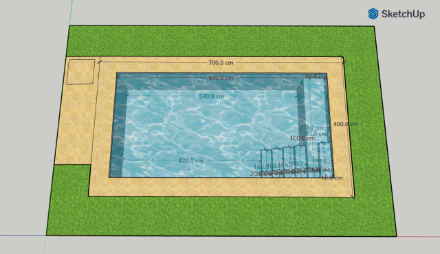 Басейн скімерний 6,0 х 3,0 м., глибина 160 м. з інтегрованими сходами.